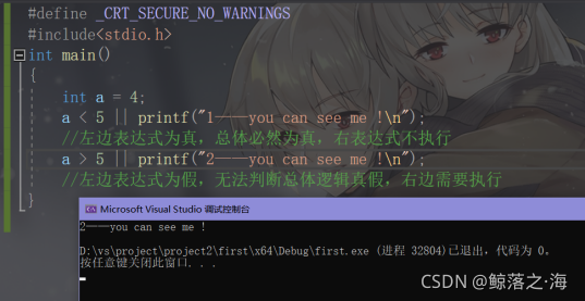 ? ? ? ?||也是逻辑运算,顺序同&&相同,当a表达式为真时,就不必在执行b表达式了,此时b不被执行,被短路。