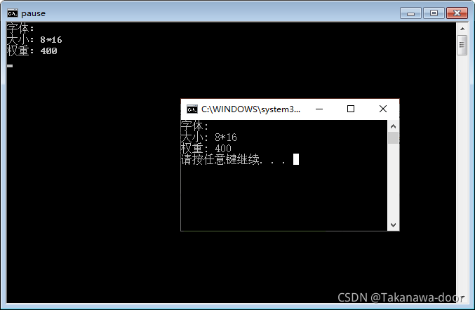 cout << "大小: " << cfi.dwFontSize.X << "*" << cfi.dwFontSize.Y << std::endl