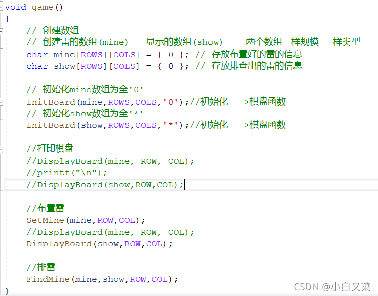InitBoard(show,ROWS,COLS,'*');//初始化--->棋盘函数