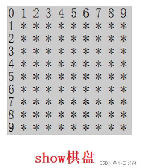 ?我们发现,打印出来的棋盘也完全符合我们的要求,我们也只需要最终将show棋盘显示给玩家即可。
