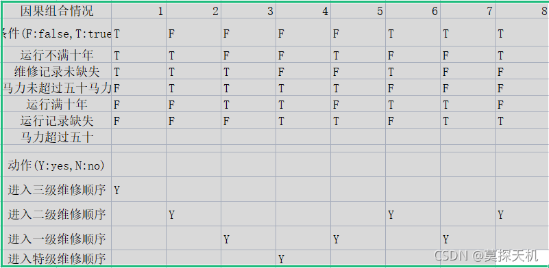 //假定维修记录不全和优先维修处理均已在别处有更严格定义,请建立决策表