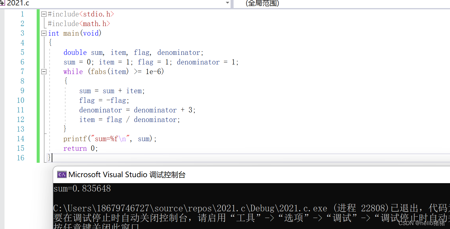 sum = 0; item = 1; flag = 1; denominator = 1;