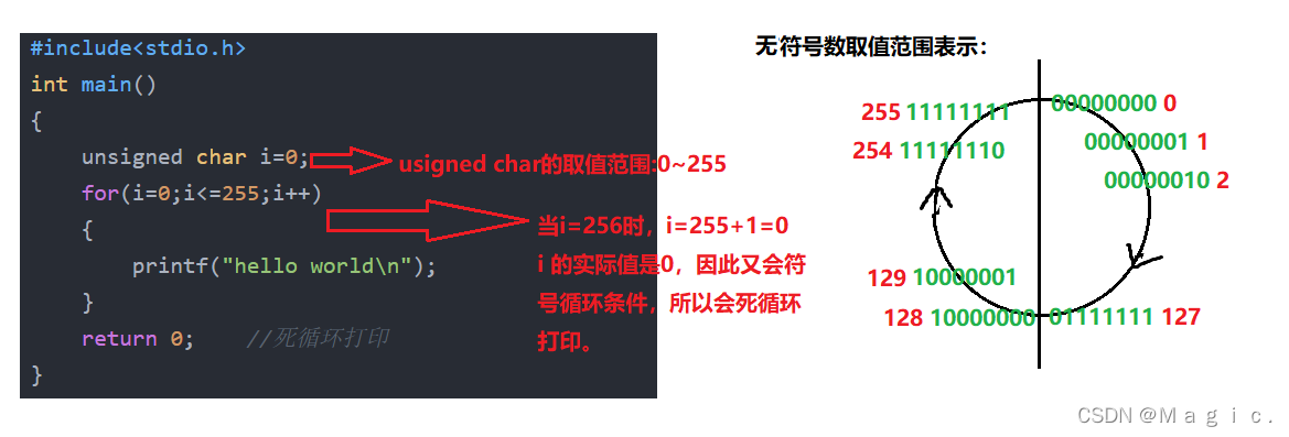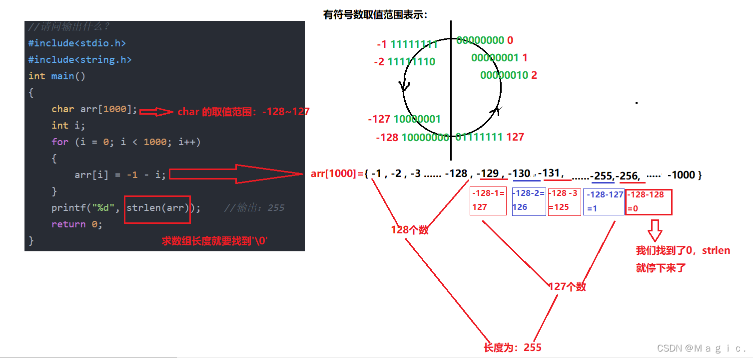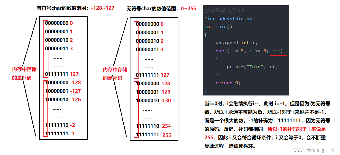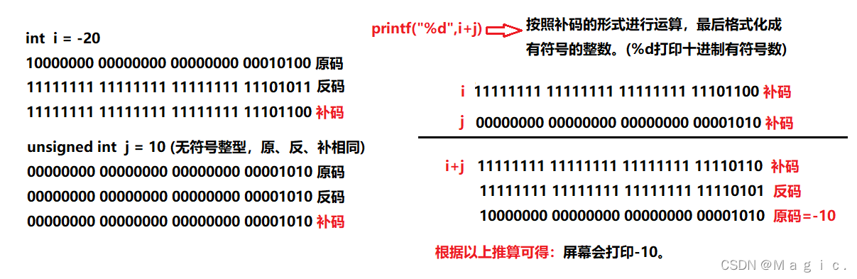 ?ps:关于原码、反码、补码的转化可参考如下:C语言--整型在内存中的存储(含大小端介绍)_Magic.的博客-CSDN博客
