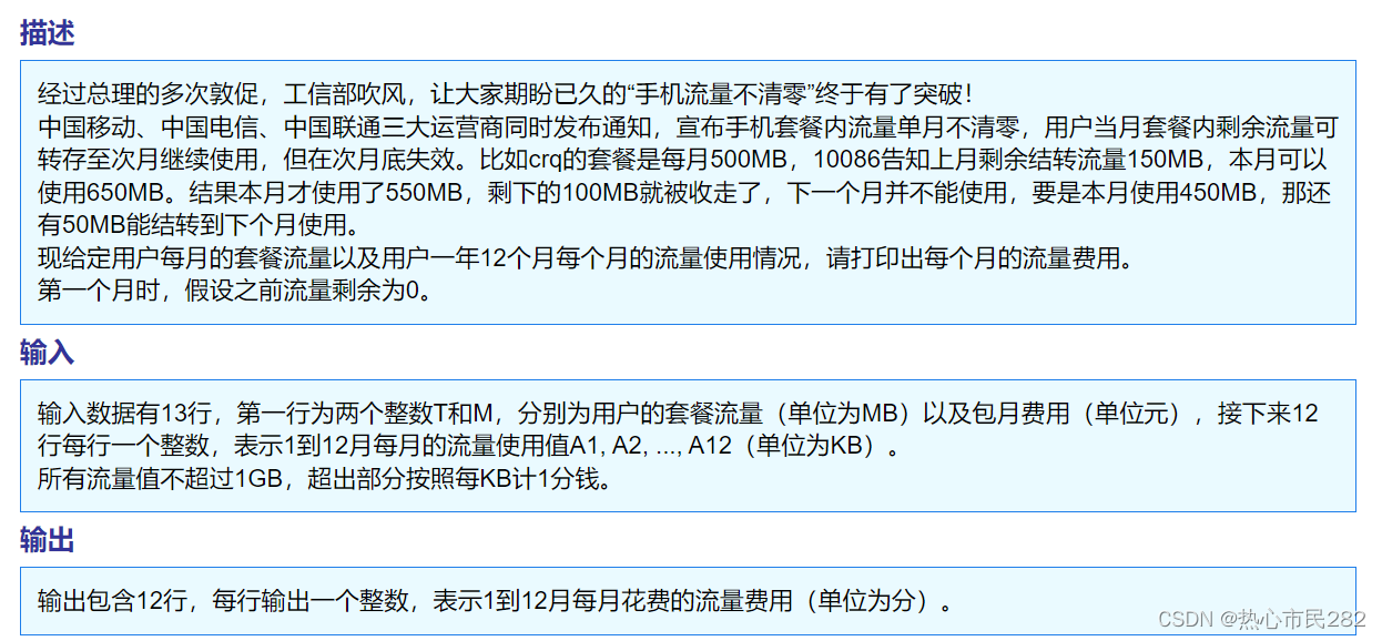 题意读取:假设上月留下的流量为 d ,本月流量优先使用本月套餐内流量,然后再使用 d。