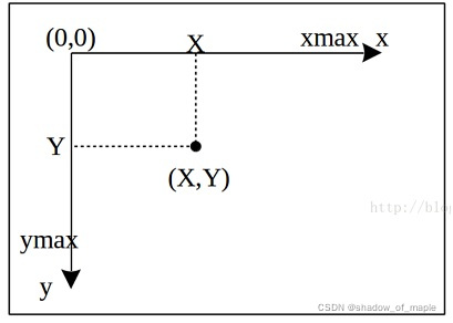 设屏幕左上角坐标为(0,0),x轴向右,y轴向下,屏幕上的点用(X,Y)坐标表示,如下图所示。