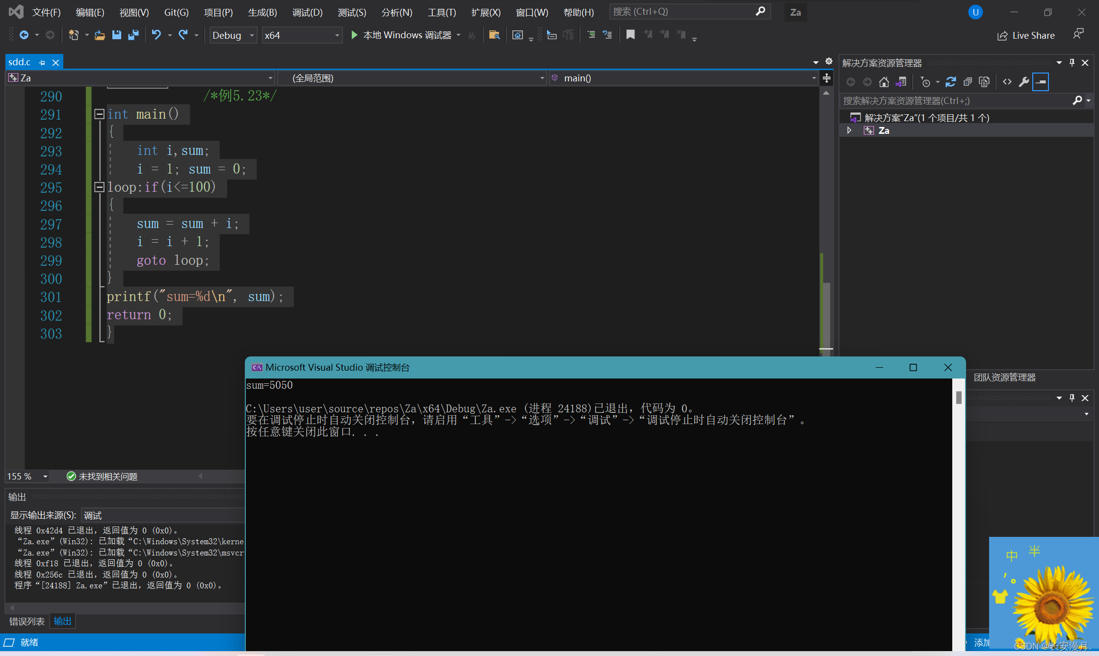int main() { ? ? int i,sum; ? ? i = 1; sum = 0; loop:if(i<=100) { ? ? sum = sum + i; ? ? i = i + 1; ? ? goto loop; } printf("sum=%d\n", sum); return 0; }