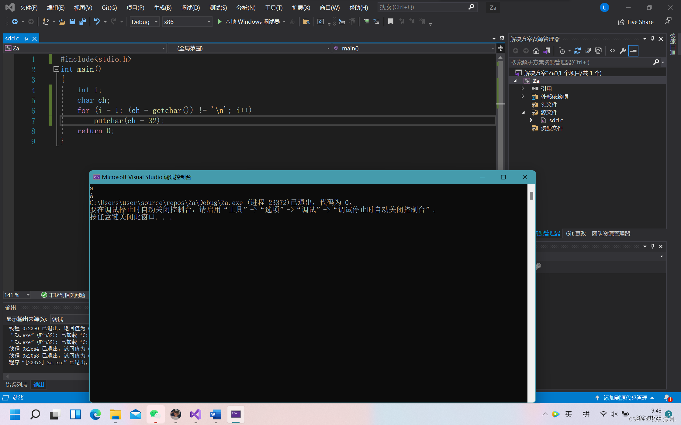 int main() { ?int i; ?char ch; ?for (i = 1; (ch = getchar()) != '\n'; i++) ? putchar(ch - 32); ?return 0; }