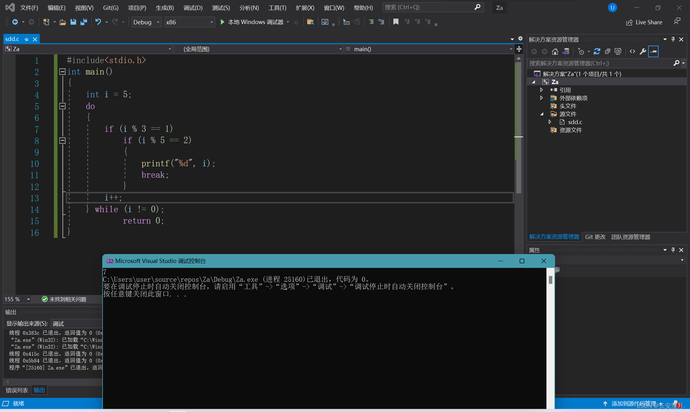 #include<stdio.h> int main() { ?int i = 5; ?do ?{ ? if (i % 3 == 1) ? ?if (i % 5 == 2) ? ?{ ? ? printf("%d", i); ? ? break; ? ?} ? i++; ?} while (i != 0); ? ?return 0; }