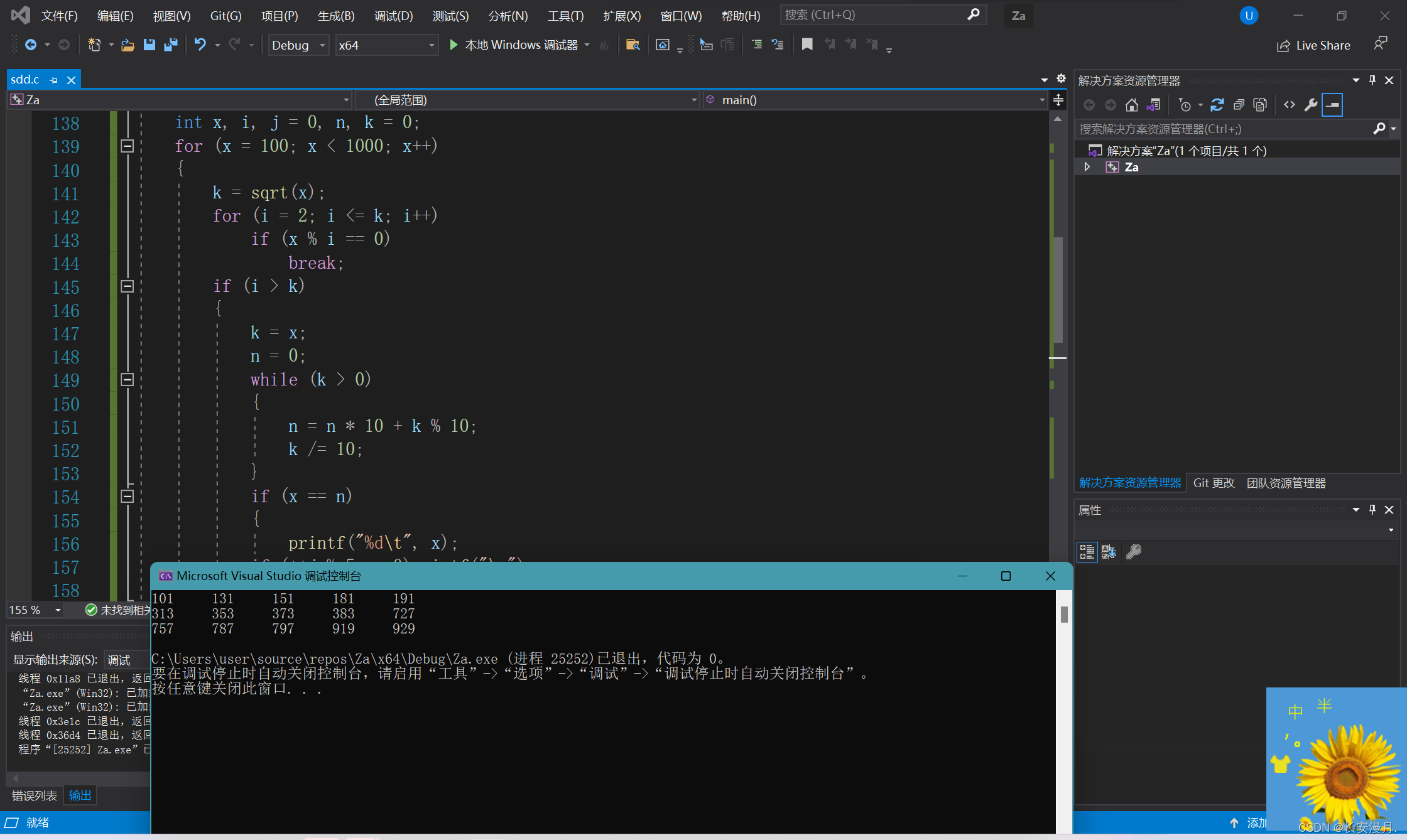 ?例5.36编写程序输出100-1000内的回文素数。回文素数是指既是回文数同时也是素数的整数int main() { ? ? int x, i, j = 0, n, k = 0; ? ? for (x = 100; x < 1000; x++) ? ? { ? ? ? ? k = sqrt(x); ? ? ? ? for (i = 2; i <= k; i++) ? ? ? ? ? ? if (x % i == 0) ? ? ? ? ? ? ? ? break; ? ? ? ? if (i > k) ? ? ? ? { ? ? ? ? ? ? k = x; ? ? ? ? ? ? n = 0; ? ? ? ? ? ? while (k > 0) ? ? ? ? ? ? { ? ? ? ? ? ? ? ? n = n * 10 + k % 10; ? ? ? ? ? ? ? ? k /= 10; ? ? ? ? ? ? } ? ? ? ? ? ? if (x == n) ? ? ? ? ? ? { ? ? ? ? ? ? ? ? printf("%d\t", x); ? ? ? ? ? ? if (++j % 5 == 0)printf("\n"); ? ? ? ? } ? ? } } ? ? return 0; }