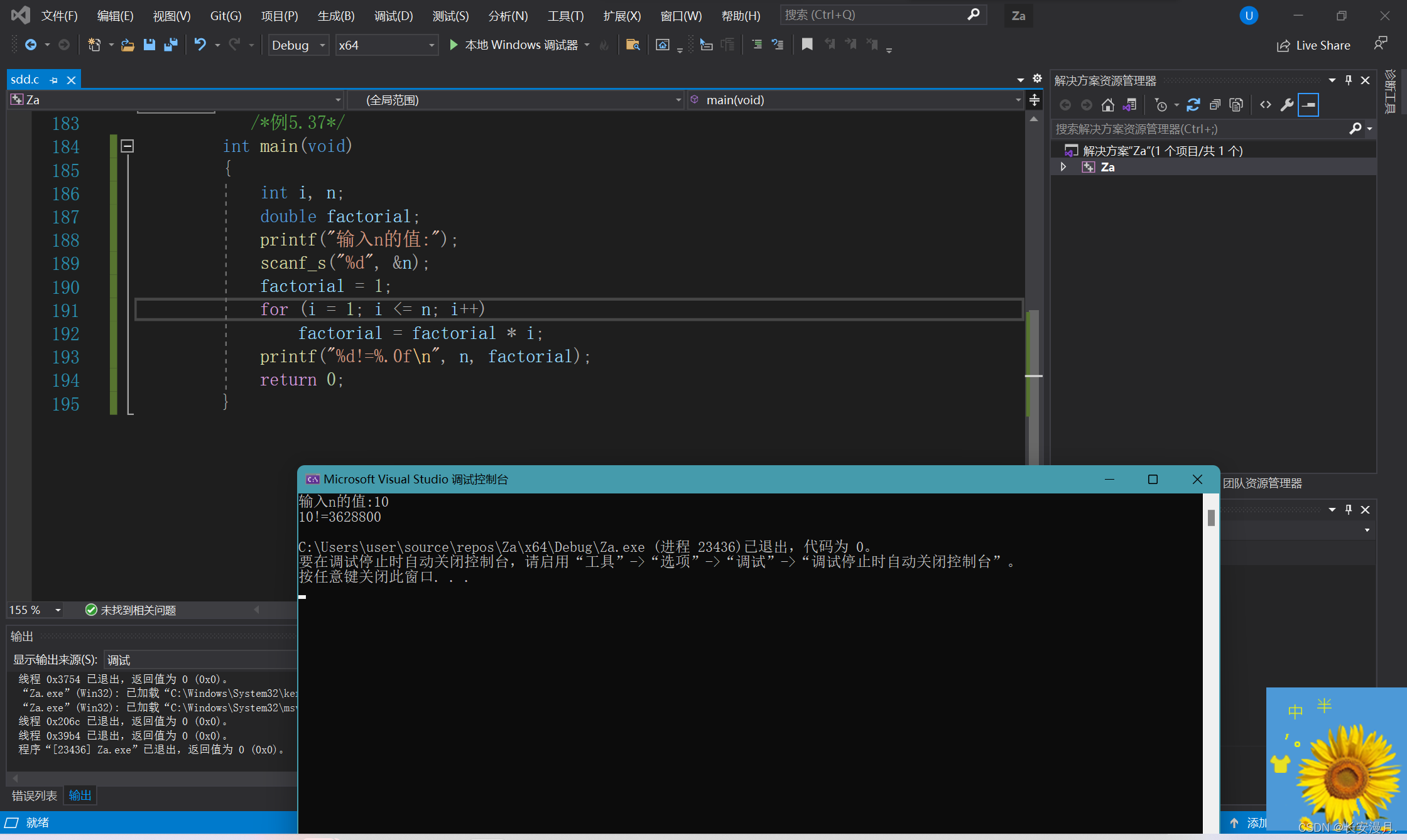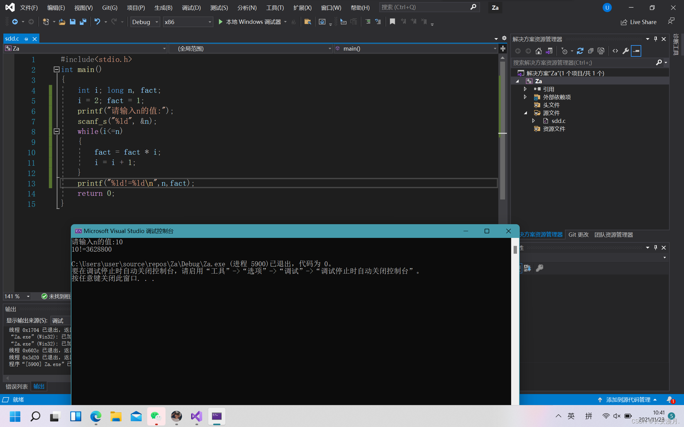 int main(void) ? ? ? ? ?{ ? ? ? ? ? ? ?int i, n; ? ? ? ? ? ? ?double factorial; ? ? ? ? ? ? ?printf("输入n的值:"); ? ? ? ? ? ? ?scanf_s("%d", &n); ? ? ? ? ? ? ?factorial = 1; ? ? ? ? ? ? ?for (i = 1; i <= n; i++) ? ? ? ? ? ? ? ? ?factorial = factorial * i; ? ? ? ? ? ? ?printf("%d!=%.0f\n", n, factorial); ? ? ? ? ? ? ?return 0; ? ? ? ? ?}int main(void) ? ? ? ? ?{ ? ? ? ? ? ? ?int i, n; ? ? ? ? ? ? ?double factorial; ? ? ? ? ? ? ?printf("输入n的值:"); ? ? ? ? ? ? ?scanf_s("%d", &n); ? ? ? ? ? ? ?factorial = 1; ? ? ? ? ? ? ?for (i = 1; i <= n; i++) ? ? ? ? ? ? ? ? ?factorial = factorial * i; ? ? ? ? ? ? ?printf("%d!=%.0f\n", n, factorial); ? ? ? ? ? ? ?return 0; ? ? ? ? ?}