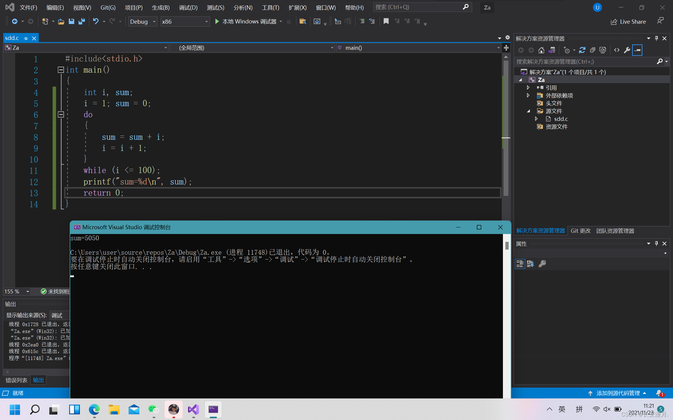 int main() { ?int i, sum; ?i = 1; sum = 0; ?do ?{ ? sum = sum + i; ? i = i + 1; ?}? ?while (i <= 100); ?printf("sum=%d\n", sum); ?return 0; }