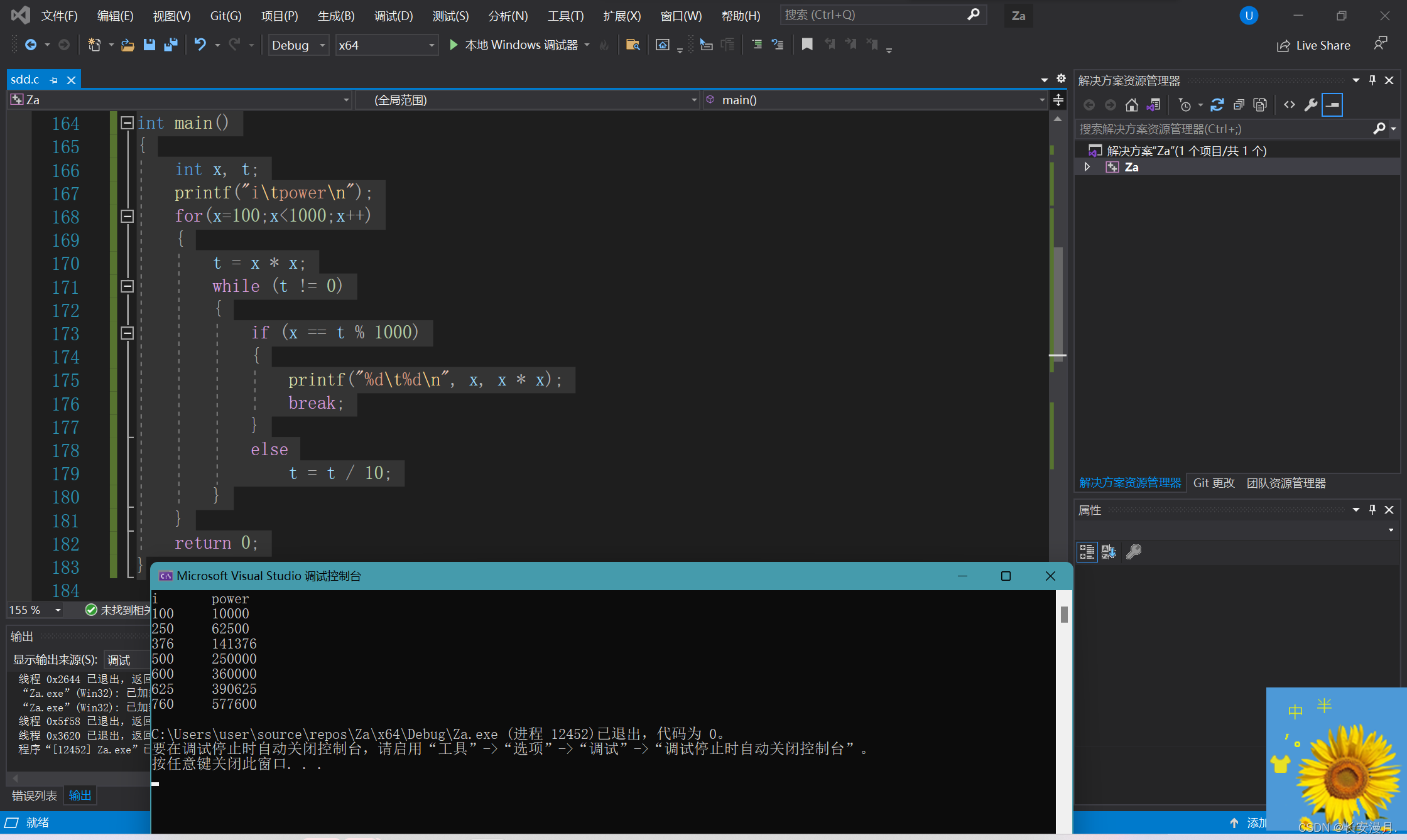 int main() { ? ? int x, t; ? ? printf("i\tpower\n"); ? ? for(x=100;x<1000;x++) ? ? { ? ? ? ? t = x * x; ? ? ? ? while (t != 0) ? ? ? ? { ? ? ? ? ? ? if (x == t % 1000) ? ? ? ? ? ? { ? ? ? ? ? ? ? ? printf("%d\t%d\n", x, x * x); ? ? ? ? ? ? ? ? break; ? ? ? ? ? ? } ? ? ? ? ? ? else ? ? ? ? ? ? ? ? t = t / 10; ? ? ? ? } ? ? } ? ? return 0; }