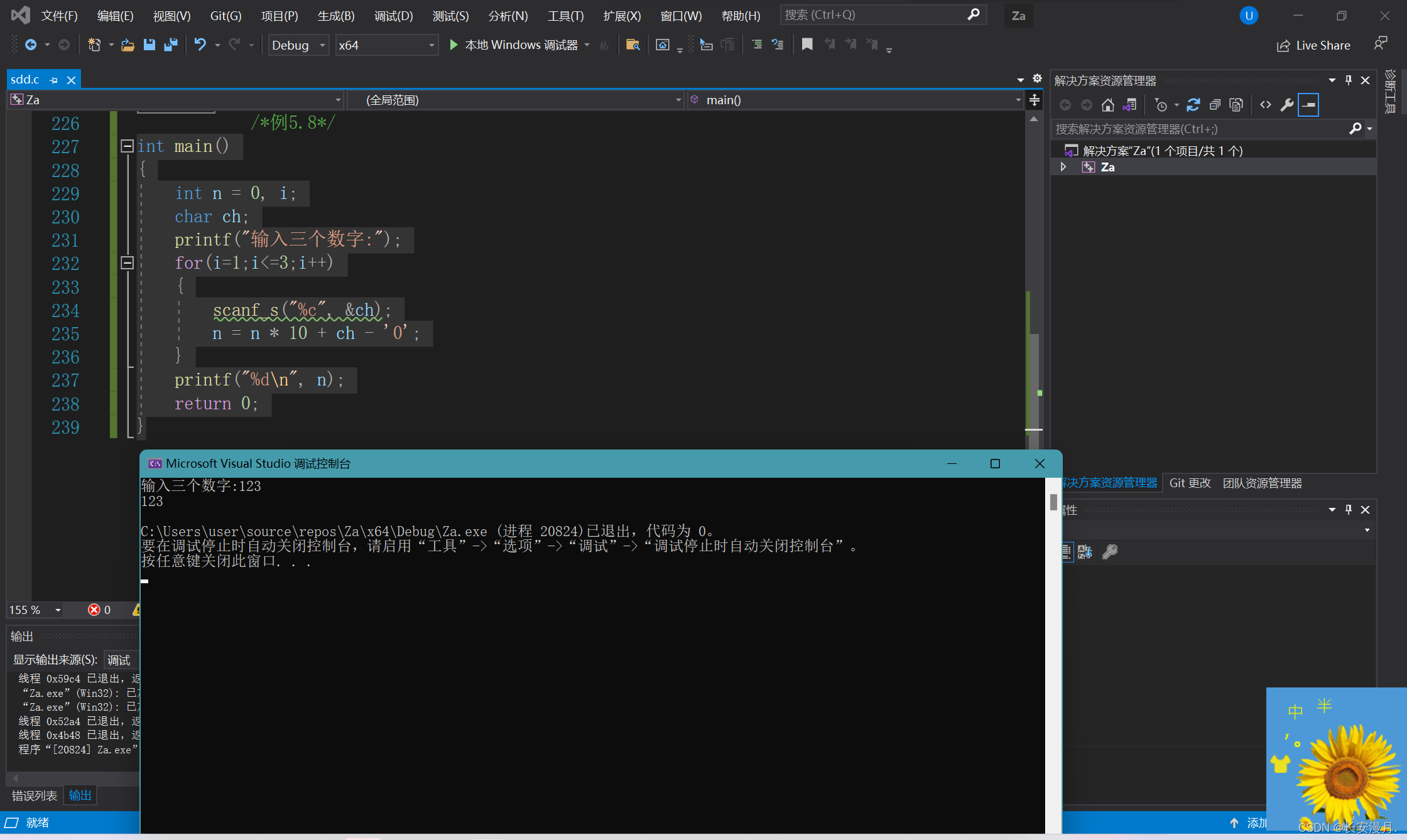 int main() { ? ? int n = 0, i; ? ? char ch; ? ? printf("输入三个数字:"); ? ? for(i=1;i<=3;i++) ? ? { ? ? ? ? scanf_s("%c", &ch); ? ? ? ? n = n * 10 + ch - '0'; ? ? } ? ? printf("%d\n", n); ? ? return 0; }?