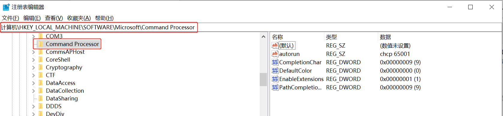 计算机\HKEY_LOCAL_MACHINE\SOFTWARE\Microsoft\Command Processor