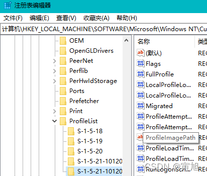 如图:ProfileList下的文件夹(每台计算机不一样)找ProfileImagePath