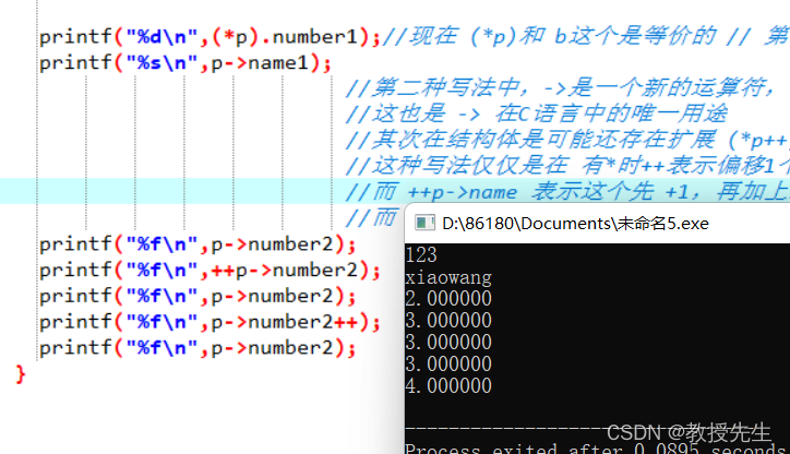 printf("%d\n",(*p).number1);//现在 (*p)和 b这个是等价的 // 第一种写法中,.的优先级高于*,(*p)两边的括号不能少