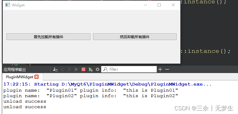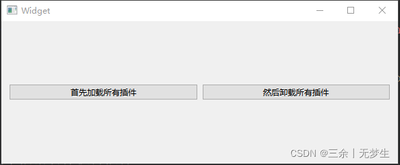 7、运行效果,先点击第一个按钮加载两个插件,再点击第二个按钮卸载两个插件。