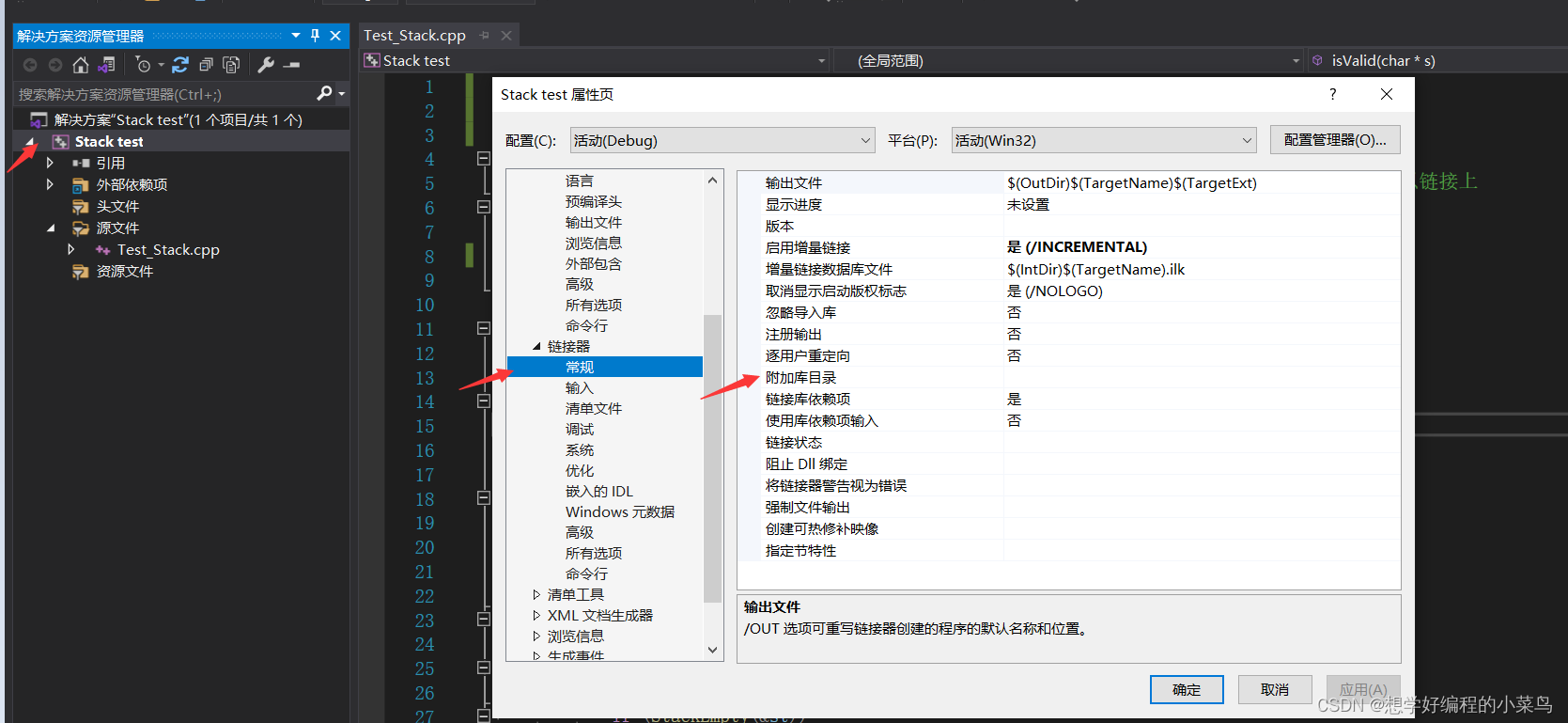 将附加库目录的路径设置为配置好的静态库的debug路径下。