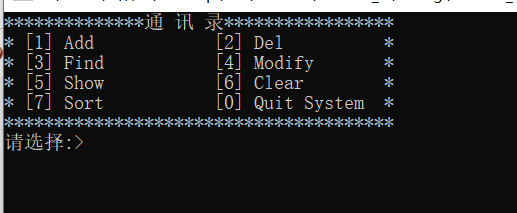 enum { QUIT, ADD, DEL, FIND, MODIFY, SHOW, CLEAR, SORT };