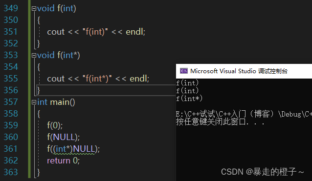 我们发现f(NULL)调用的是函数void f(int);? 实际上我们期望调用的是void f(int*);