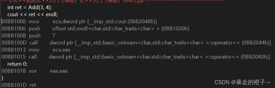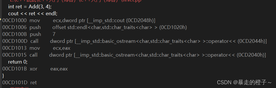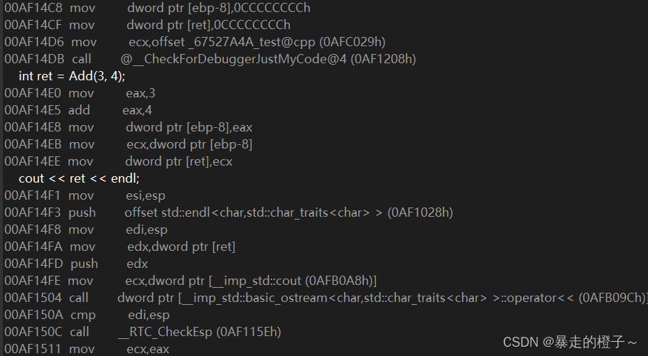 ? ? ?这时候我们就可以看到没有call Add()函数的指令了,于是就减小了栈空间开销,优化了代码。