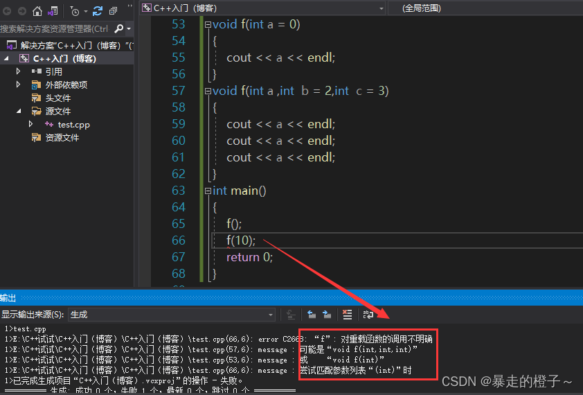 链接错误:main.obj : error LNK2019: 无法解析的外部符号 "void __cdecl f(int)" (? f@@YAXH@Z),该符号在函数 _main 中被引用。