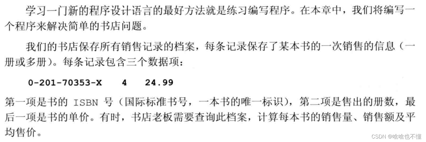 我们要先解决一个问题,什么样的数据类型才能存储每条记录呢。C++中,我们通过定义一个类(class)来定义自己的数据结构。一个类定义一个类型,以及与其关联的的一组操作。C++最初的一个设计焦点就是能定义使用上像内置类型(int float .....)一样自然的类类型(class type)