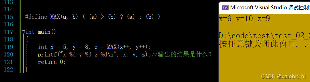 当宏参数在宏的定义中出现超过一次的时候,如果参数带有副作用,那么你在使用这个宏的时候就可能出现危险,导致不可预测的后果。副作用就是表达式求值的时候出现的永久性效果。