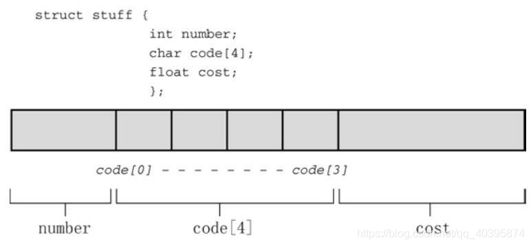 这行代码表明,用 book 结构来为 library 变量分配空间,包括了一个还有 100 个元素的 char 数组,一个包含 80 个元素的 char 数组,和一个 float 类型的变量。  ??在结构变量 library 的声明中,struct book 的作用相当于 int 或者 float 。和基本类型变量的声明一样,可以定义多个结构变量,甚至是结构指针。