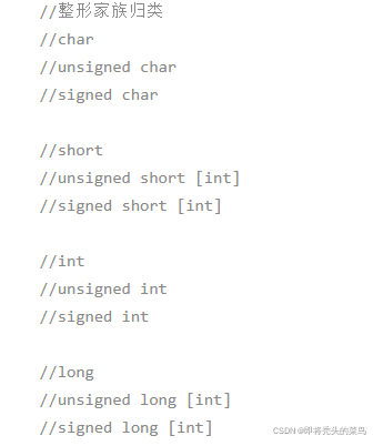 前言hello大家好,我是离秃头又进了一步的那个菜鸟,此次我将深入浅出的给大家讲一下数据在内存中的存储 重点1. 数据类型详细介绍 一、数据类型详细介绍类型的基本归类