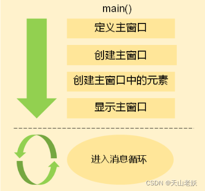 操作系统提供了创建界面元素所需要的函数,依次调用不同功能的函数就可以创建出界面元素,但操作系统提供的原生函数无法直接映射到界面元素。根据面向对象程序设计思想,将界面元素抽象为类,GUI界面的创建过程就是组合不同界面元素对象的过程。