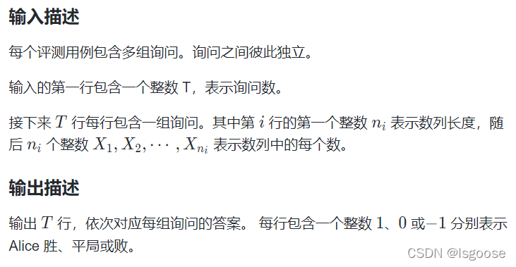 对于所有评测用例,1≤T≤200000,1≤i=1∑T?ni?≤200000,0≤Xi?<2020?。?