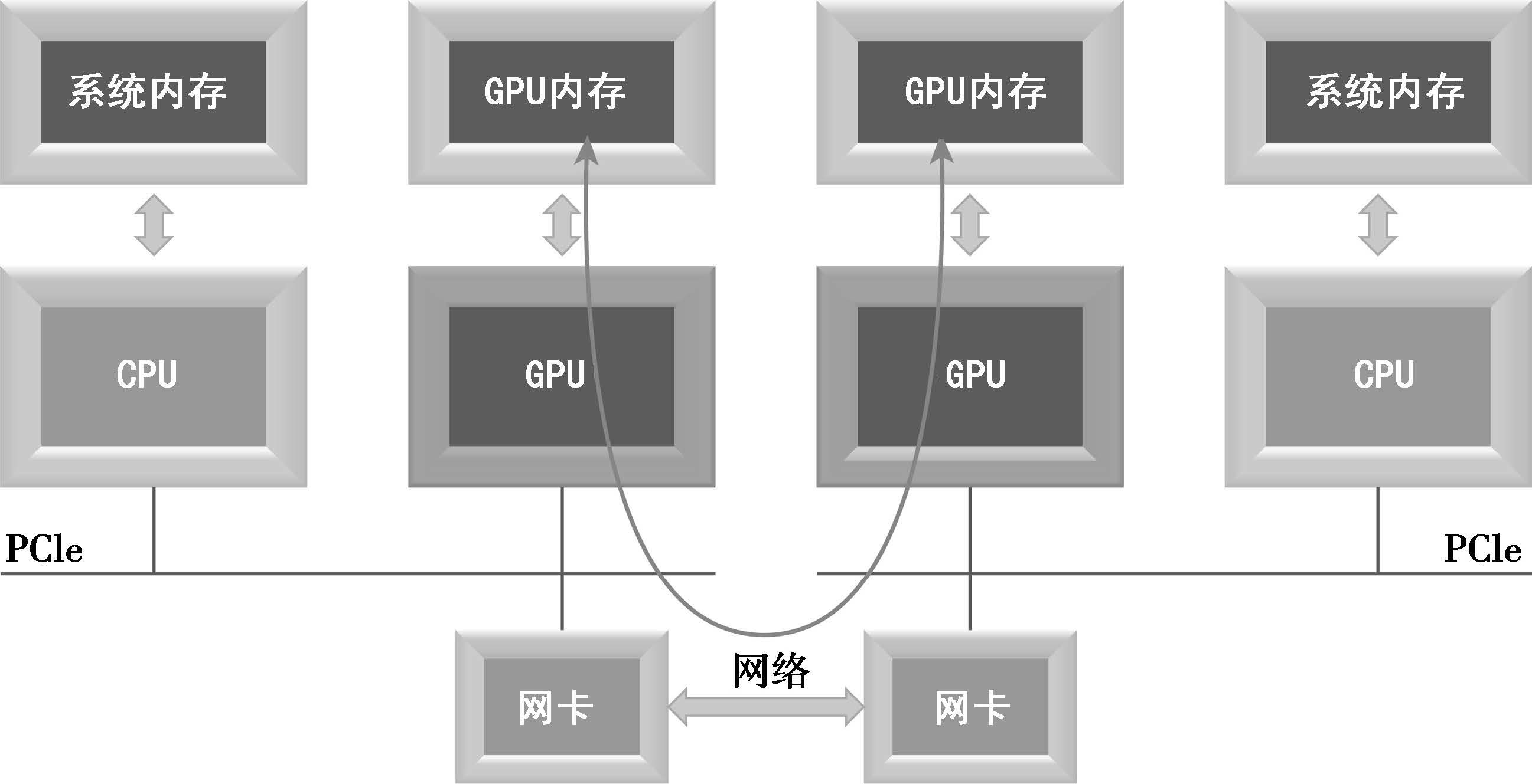 使用传统MPI的两个GPU间的双向数据传输可以分两步执行:首先,将数据从设备内存复制到主机内存;其次,使用MPI通信库在MPI进程之间交换主机内存里的数据: