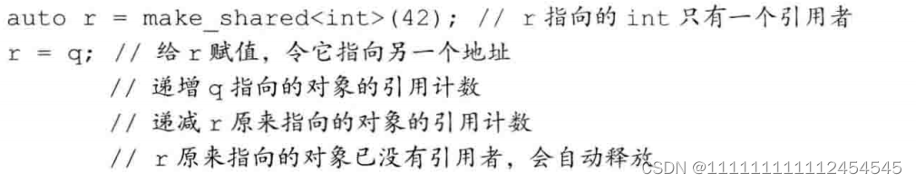 auto p=make_shared<int>(42) //p指向的对象只有p一个引用者