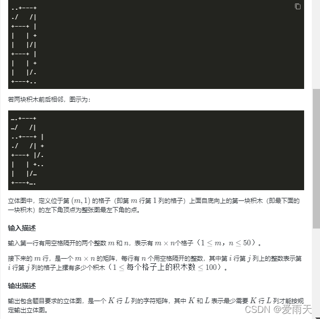 draw((n-i)*2+1+3*k,(n-i)*2+1+4*j); //计算每个位置的小立方体的左下角坐标