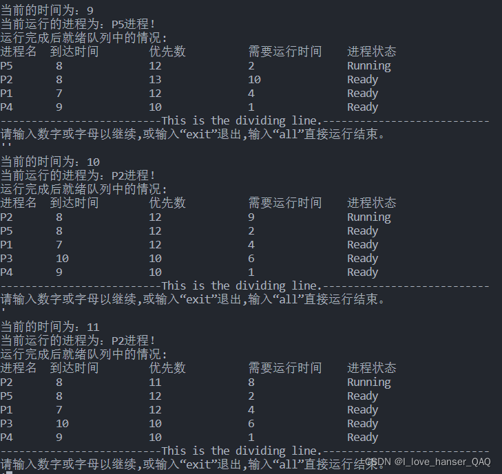 cout << "运行完成后就绪队列中的情况:" << endl;