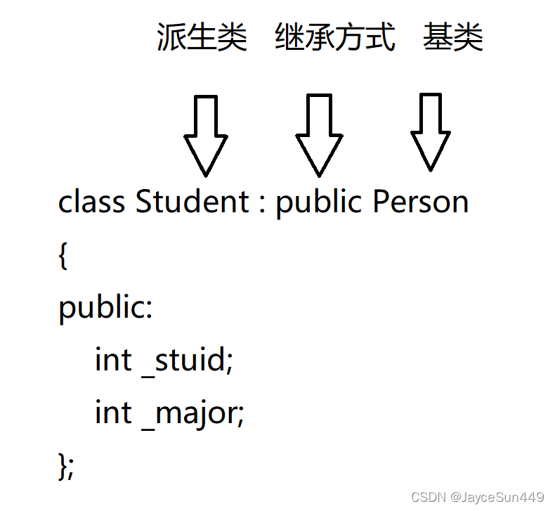 此处Person是父类,也称基类,Student是子类,也称派生类。