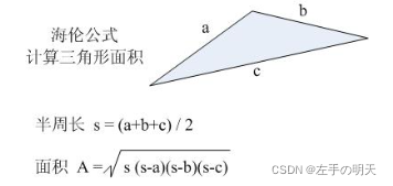一般需要把它划分为多个三角形来计算。已知三边求三角形的面积需要用海伦定理,