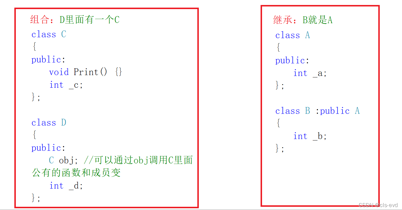 - 实际上面的表格我们进行一下总结会发现,基类的私有成员在子类都是不可见。基类的其他成员在子类的访问方式 == Min(成员在基类的访问限定符,继承方式),public > protected > private。