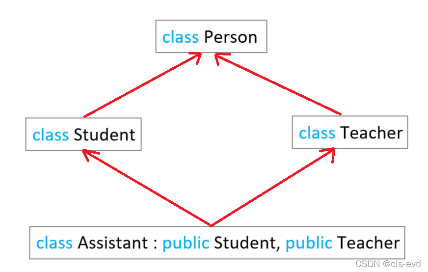 ?菱形继承的问题:从下面的对象成员模型构造,可以看出菱形继承有数据冗余和二义性的问题。在Assistant的对象中Person成员会有两份。