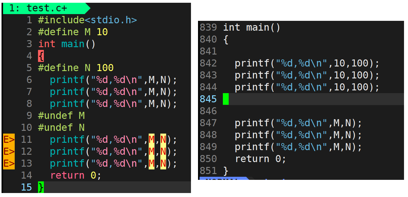 - ?宏的有效范围:是从定义处往下有效,之前无效