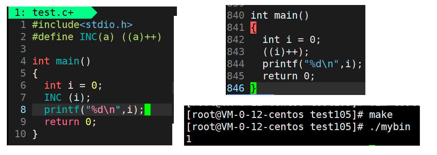 - 在这里其实是可以把宏定义中的语句放进{? }里,但是我上面这样做是最完美的