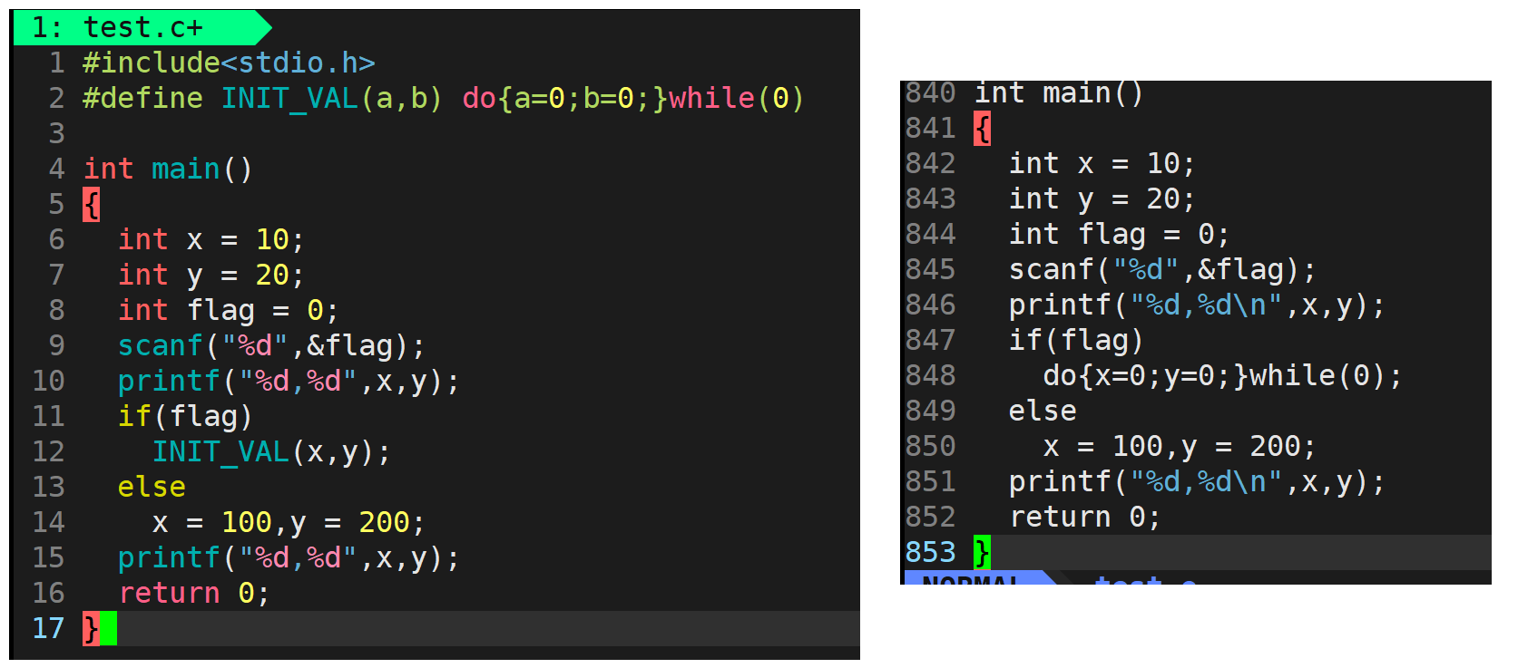 - 一个前面定义了宏,就执行后面的语句,另一个前面没有定义宏,就执行后面语句?