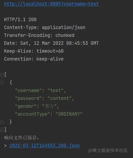 点击controller左边的绿色小按钮,我们直接用idea发起http测试,这么简单的接口就用不着打开postman了