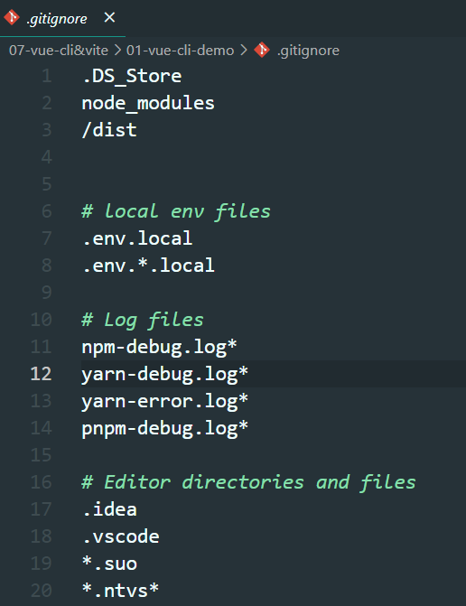 一般情况下我们使用默认的配置就可以了。 git忽略文件.gitignore:提交代码时忽略的文件,文件夹等。