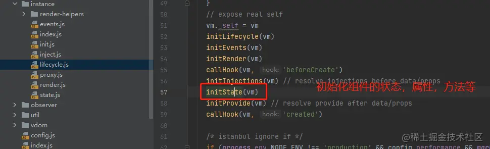 watcher首先会把render函数运行一次以收集依赖,于是那些在render中用到的响应式数据就会记录这个watcher。 -
