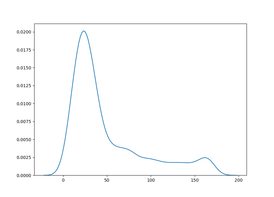 安装:直接pip kde(核密度估计)是对未知分布的估计,所以可能有超出去值范围的估计(比如下图我定义的有效范围是0-180,但kde在<0和>180时仍然有曲线)。只要看自己想要的范围就好了,它在上面的拟合是可以的。 当然,也可以在distplot中用不同曲线拟合。