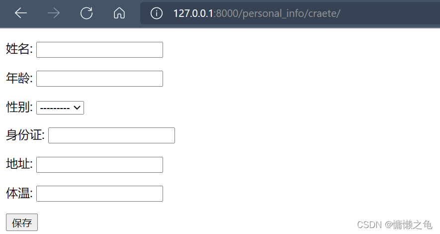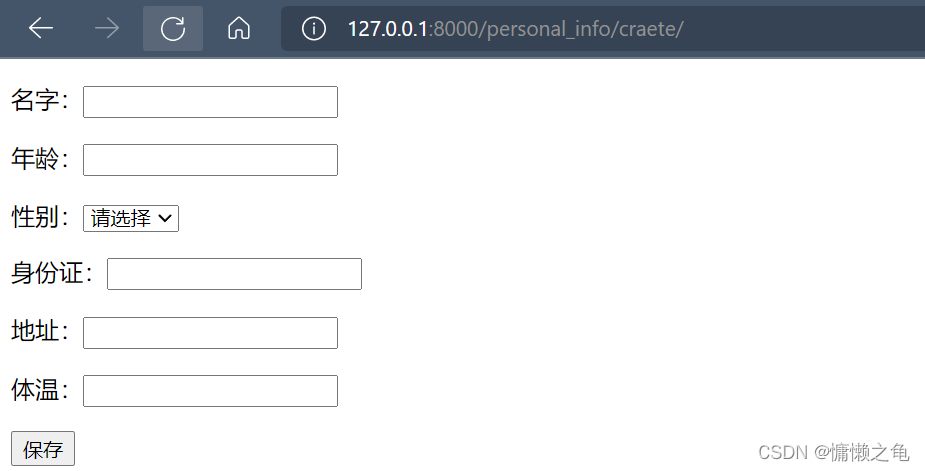 >>> form=CreatePersonForm(data={'name':'王二狗','age':15,'gender':2,'id_card':123456789,'address':'北京市','temperature':37})