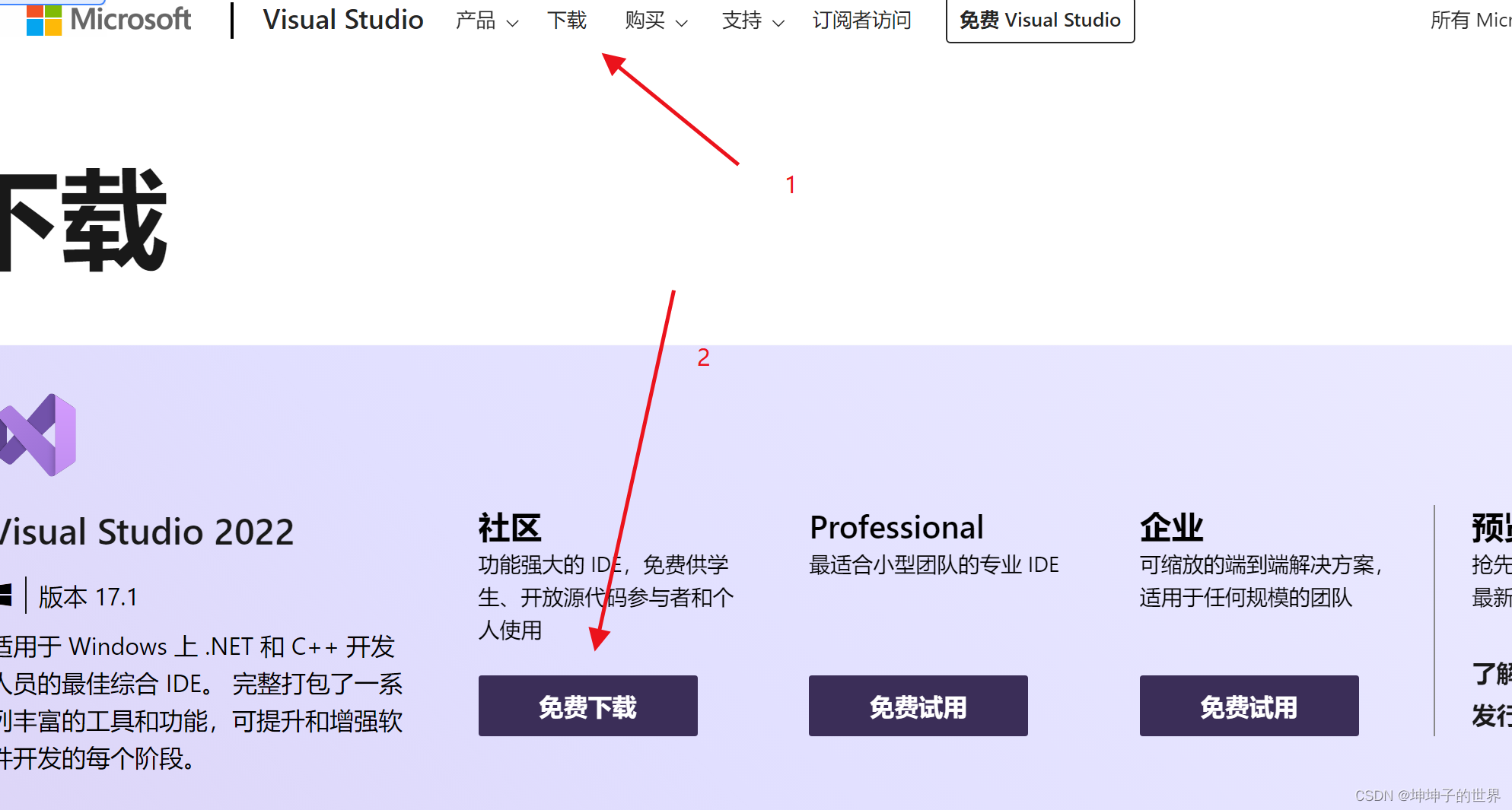 第一步:进入官网:Visual Studio: IDE and Code Editor for Software Developers and Teams下载社区版