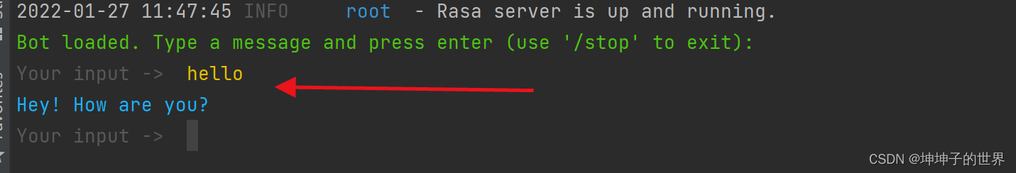 打开prcharm Terminal 输入命令rasa init,使用示例训练数据为你建立一个完整的项目。